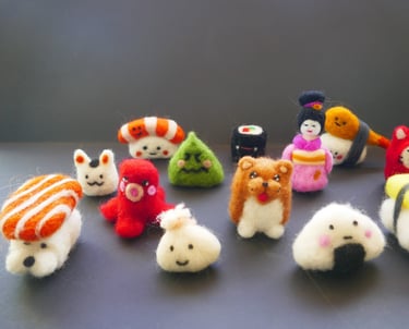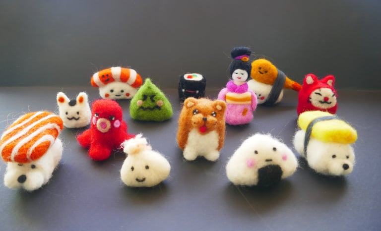 con ago per punzonare (anche di plastica)e lana cardata andremo a creare un bellissimo sushi kawaii