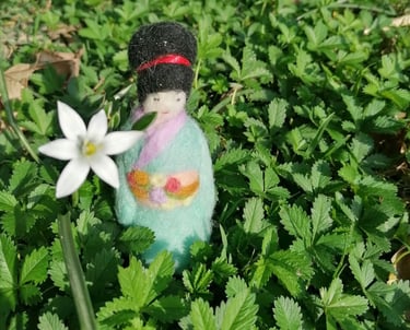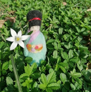 Bambola kokeshi di lana cardata