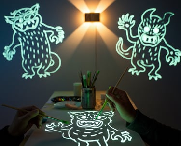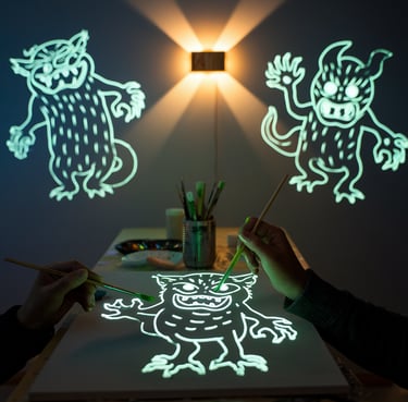 in questo laboratorio andremo a creare dei timbri di personaggi mostruosi che poi andremo a vedere illuminarsi nella struttura con luci wood